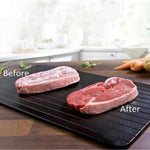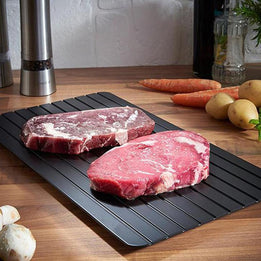 This super defrosting tray is made out of high-quality thermal conductive material to speed up thawing process dramatically. The tray does not need either electricity or batteries.